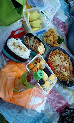 無事ラリーをして貰う物貰って、適当な場所に敷物ひいてご飯食べました。皆で持ち寄りで、好きなものつつく感じ。