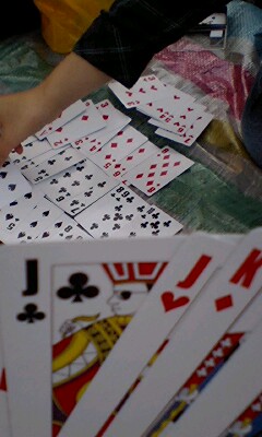 食後は何故か晴れ渡る青空の下トランプに興じました。負けまくったよ!!ドーナツとか久々にやったw