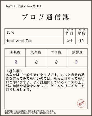 今話題?のブログ通信簿をやってみました。