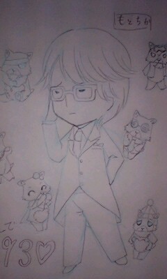 スキャナ起動するのも手間だったので、写メですがそのうちちゃんと色を塗りたいな・・・な元親とベア6。元親といえばクマかなとチマチマ描きましたとさ。